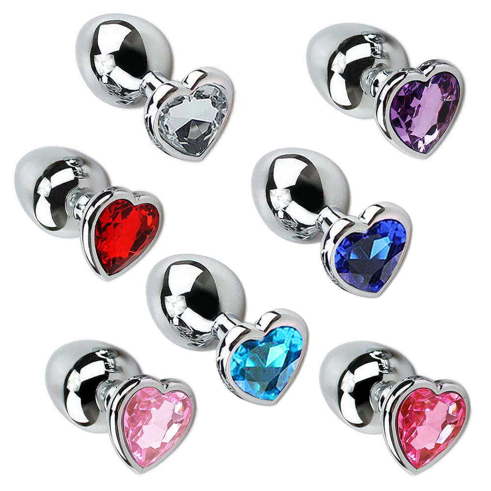 Plug Anal em Alumínio, Base em Formato de Coração com Pedra Colorida - Tamanho Médio